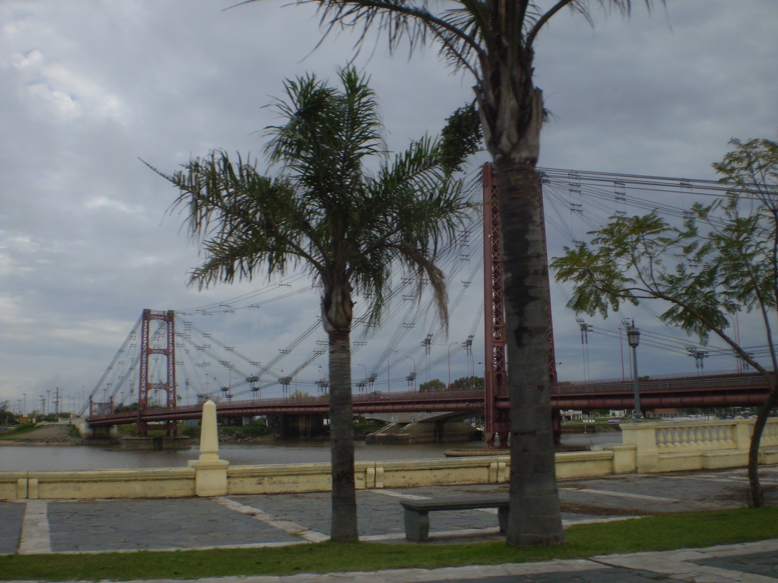 LA COSTANERA DE SANTA FE, AL FONDO EL PUENTE COLGANTE, ICONO DE LA CIUDAD. SE CAYO EN UNA INUNDACION PERO FUE RECONSTRUIDO AÑOS MAS TARDE